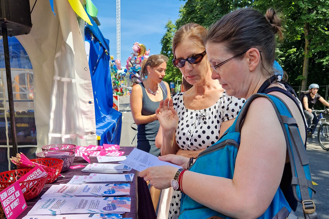 «Die Aktion war ein toller Erfolg», zieht Christine Hintermann Bilanz ihrer Aktion vor dem Zelt von Barrio5. Die vier Botschafter waren unermüdlich im Einsatz, zusätzlich unterstützt von Gregors Tochter. Von 11 Uhr bis 14 Uhr sprachen sie mit gut 100 Personen. Dass sich so viele Interessierte überhaupt auf Gespräche einliessen, war keine Selbstverständlichkeit, da vielen als Nicht-Betroffene das Thema bisher nicht bekannt gewesen war.
