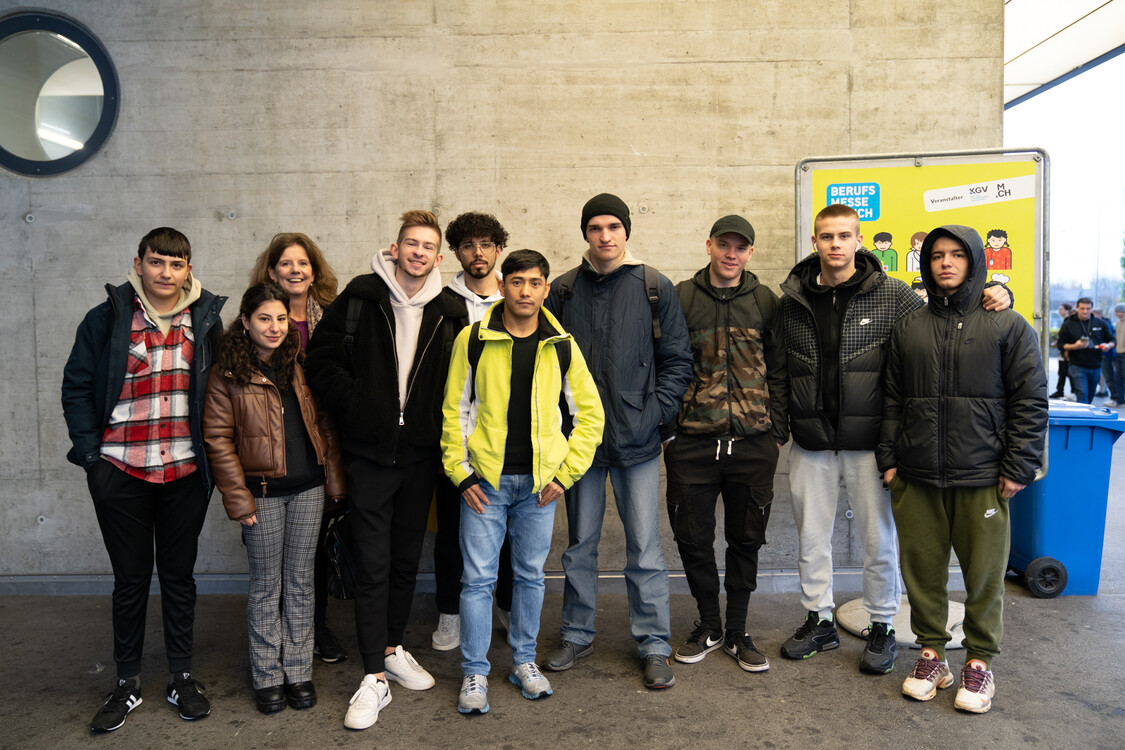 Ende November besuchte Klassenlehrerin Dominique Sandoz Mey mit ihrer Klasse «START! Berufsbildung» die Berufsmesse Zürich. Dabei erhielten die Lernenden, die aus Afghanistan, Syrien, der Türkei und der Ukraine in die Schweiz geflüchtet sind, einen ersten Einblick in die beruflichen Möglichkeiten in ihrem neuen Zuhause.