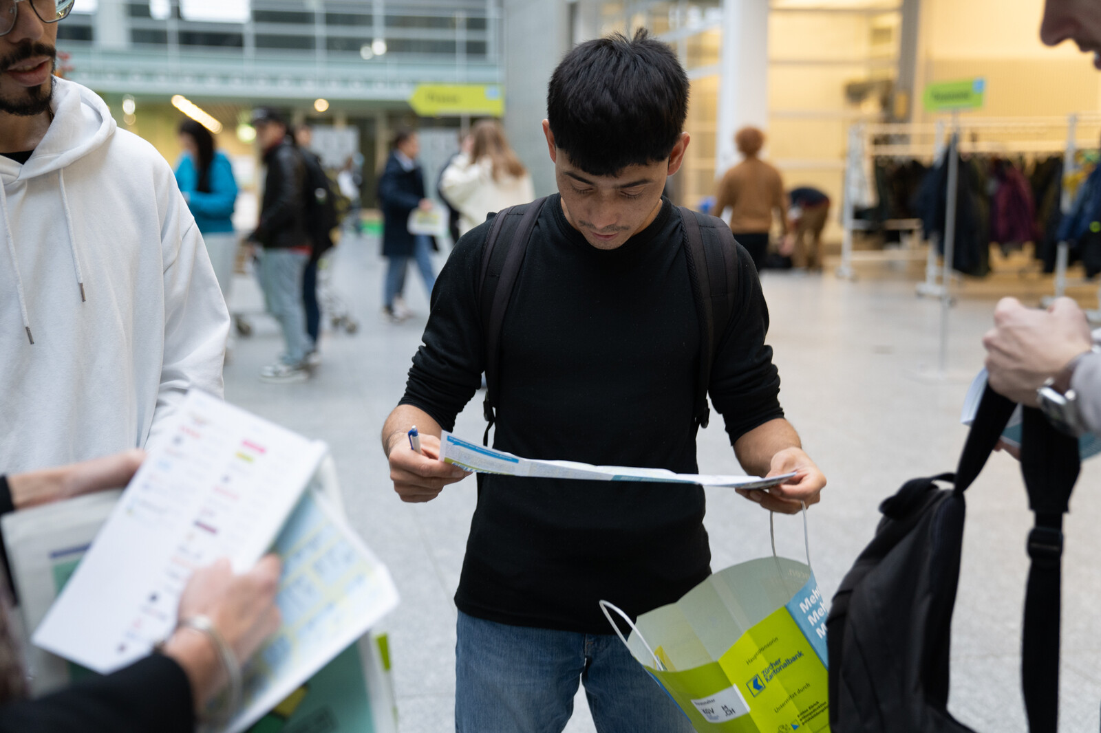 «Eigentlich möchte ich Tierarzt werden», sagt Bohdan (21 J.) aus der Ukraine. «Doch für ein Studium in der Schweiz ist mein Deutsch nicht gut genug.» Deshalb überlegt er sich, zuerst eine Lehre als Dentalassistent zu absolvieren und später Zahnmedizin zu studieren. Mehmet (16 J.) aus der Türkei will Anwalt werden, seit dem Besuch der Berufsmesse kann er sich aber auch eine Ausbildung als Fachmann Gesundheit vorstellen.