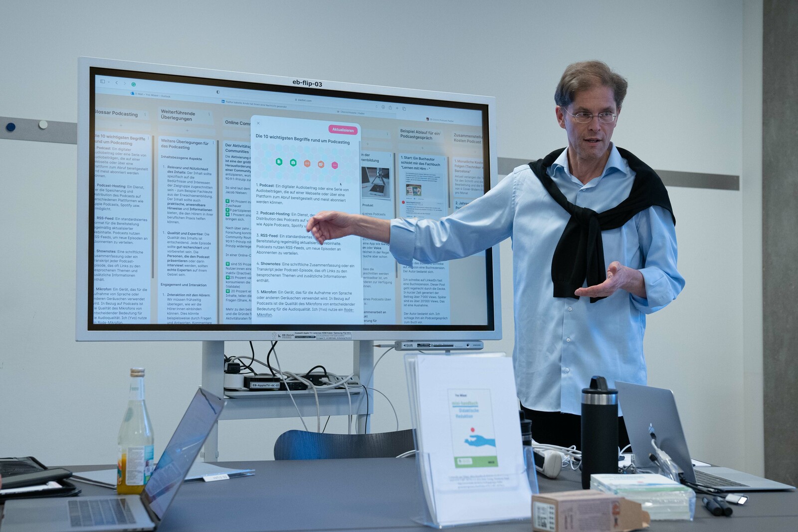 Podcasts auf Apple oder Spotify kommen zwar nicht auf Reichweiten wie Videos auf TikTok, sie stellen aber ein ideales Medium dar. Mit relevanten Inhalten können Fachpersonen in ihren Zielgruppen ihre Kompetenz verbreiten. Doch wie sieht die noch junge Praxis eins Podcasters aus? Und welche Pläne verfolgt die EB Zürich mit diesem Medium?