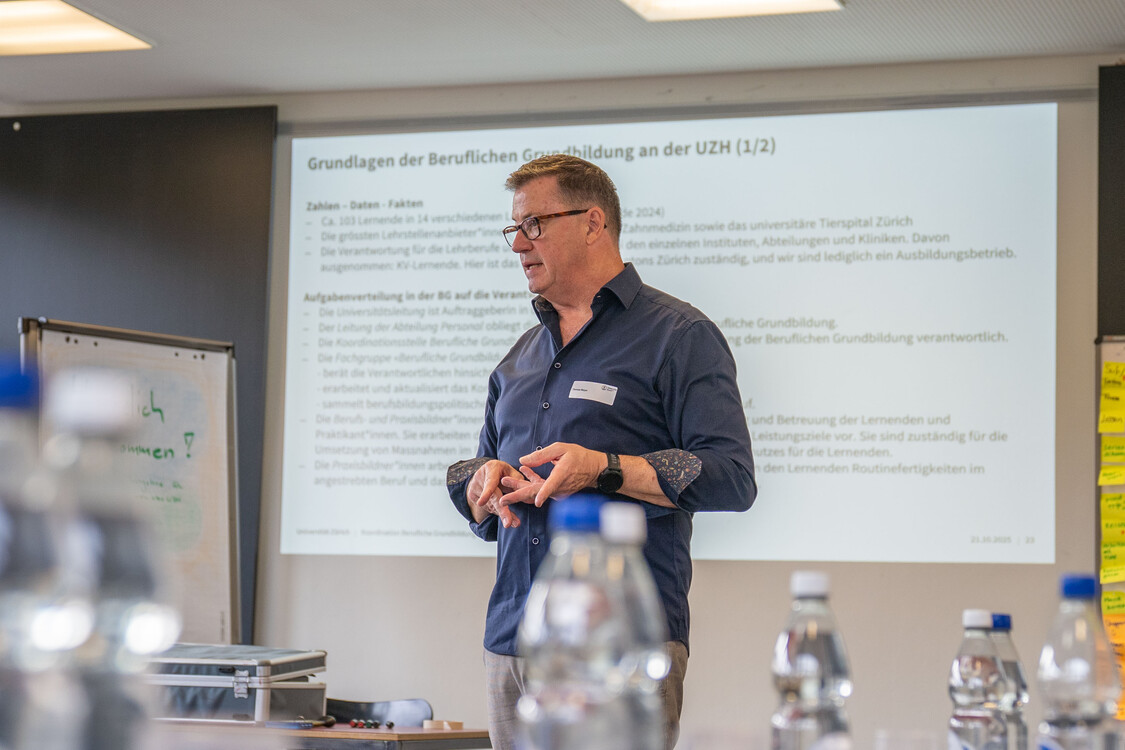 Der zweitägige Kurs entstand in Zusammenarbeit mit der EB Zürich. Von Anfang an stand der Praxisbezug im Vordergrund: Im ersten Modul vermittelten David Ehrat und Thomas Meyer den Teilnehmenden das Ausbildungskonzept sowie die internen Anlaufstellen und die Abläufe der Universität Zürich. In den folgenden von Francesca Vivona, Kursleiterin an der EB Zürich, geleiteten Modulen, erarbeiteten die Teilnehmenden gemeinsam Themen wie den Umgang und die Kommunikation mit Lernenden sowie deren Beurteilung.