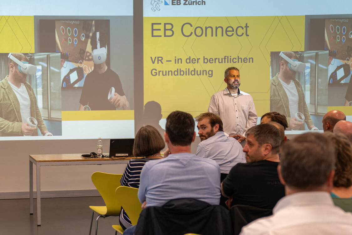Virtuelle Lernsequenzen sind vielerorts bereits Teil der Ausbildung in Betrieben. Am Get-Together von EB Connect stellten Firmen ihre aktuelle VR-Projekte vor. Besucherinnen und Besucher konnte diese praxisnah erleben und sich mit den Verantwortlichen austauschen.
