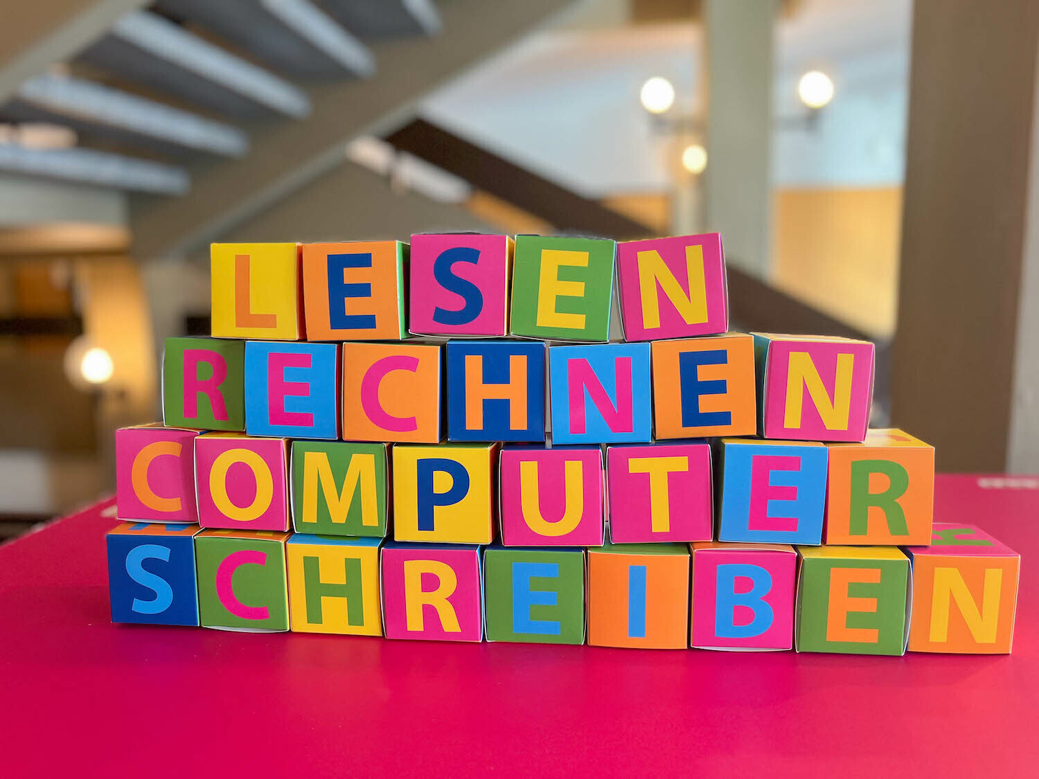 Die erste Wanderausstellung fand in der Kantonsbibliothek Liestal am 8. September 2022 statt. Die Botschaftsgruppe Grundkompetenzen der Volkshochschule beider Basel wollte zum Anlass des UNESCO Welttages der Alphabetisierung die Öffentlichkeit für das Thema Lesen, Schreiben, Rechnen und Computer Anwendungen im Alltag sensibilisieren. Die Idee, dass die Ausstellung ‘wandern’ soll, finde ich besonders schön, und hat uns dazu animiert, sie am Internationalen Tag der Mathematik an der EB Zürich auszustellen.
